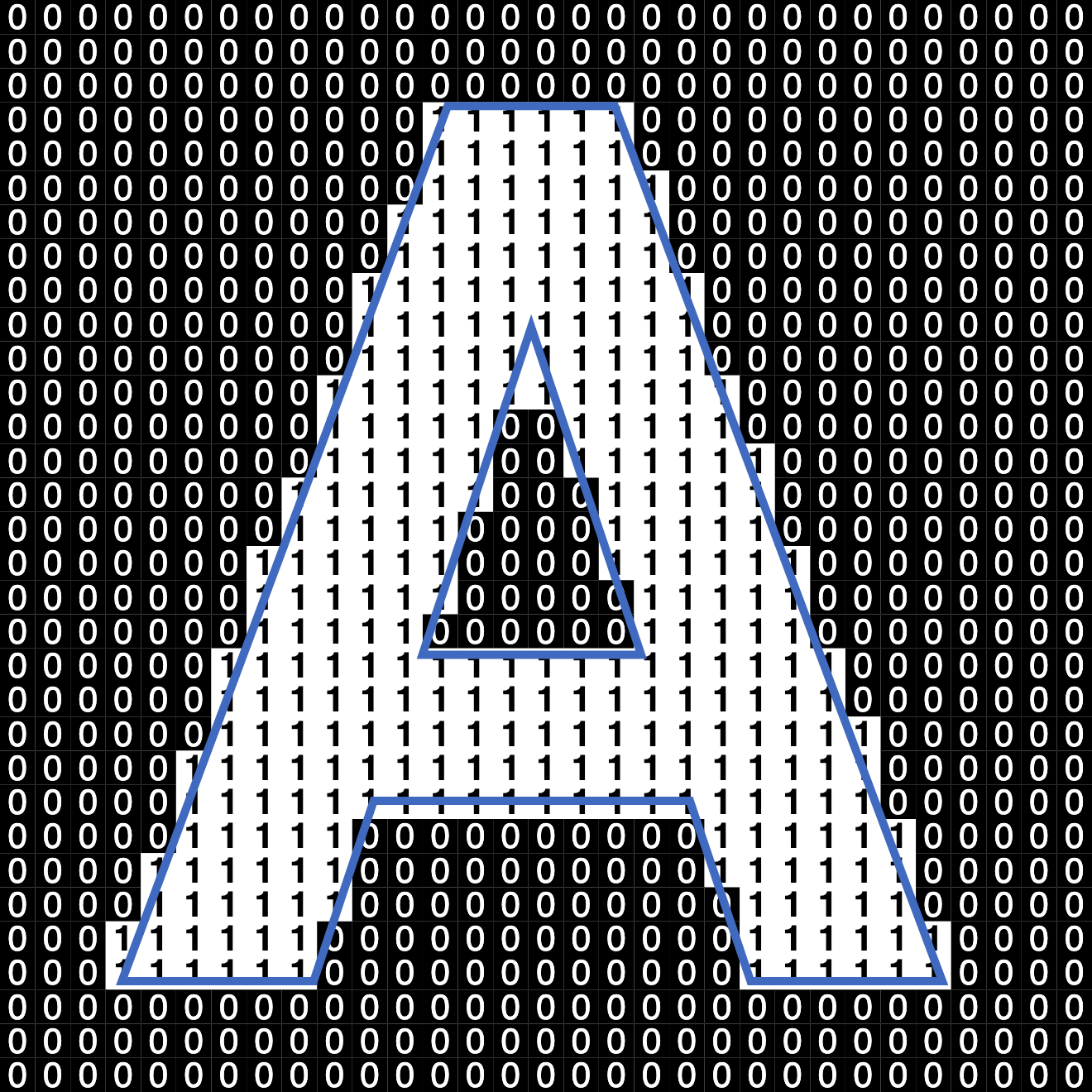 The numbers are in the input. The colors are the output. Here’s an example for the letter “A”: