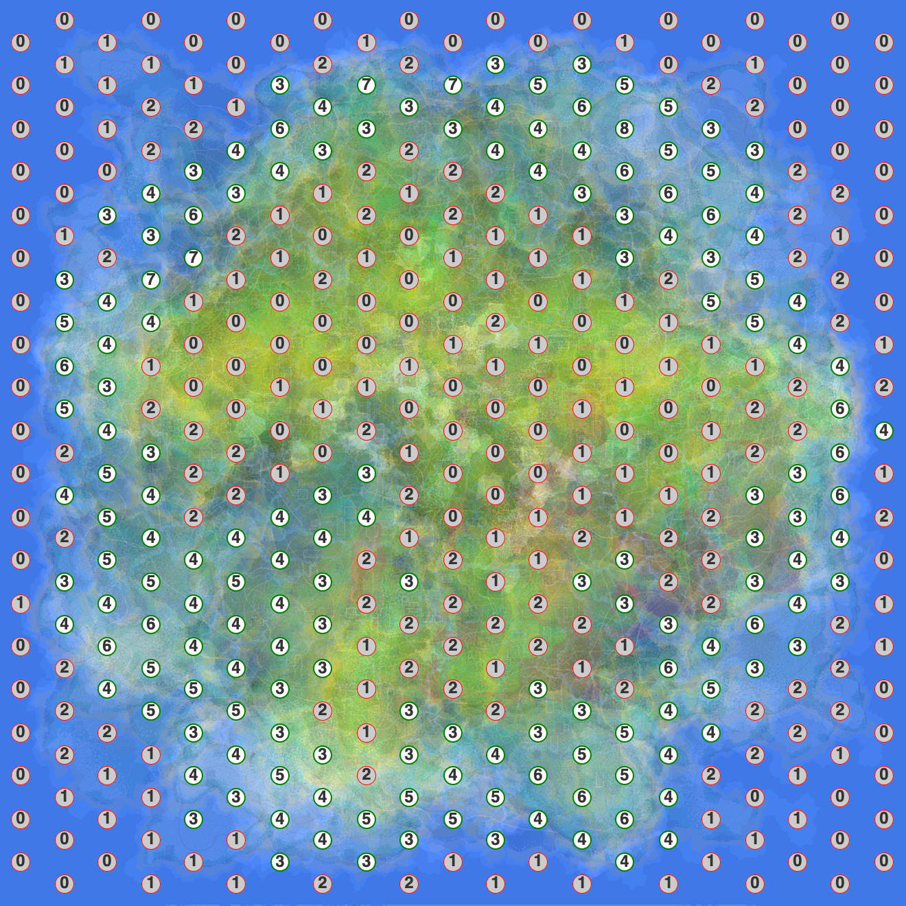 But the maps we’re looking for aren’t the average map. I counted how often the point was different from average: